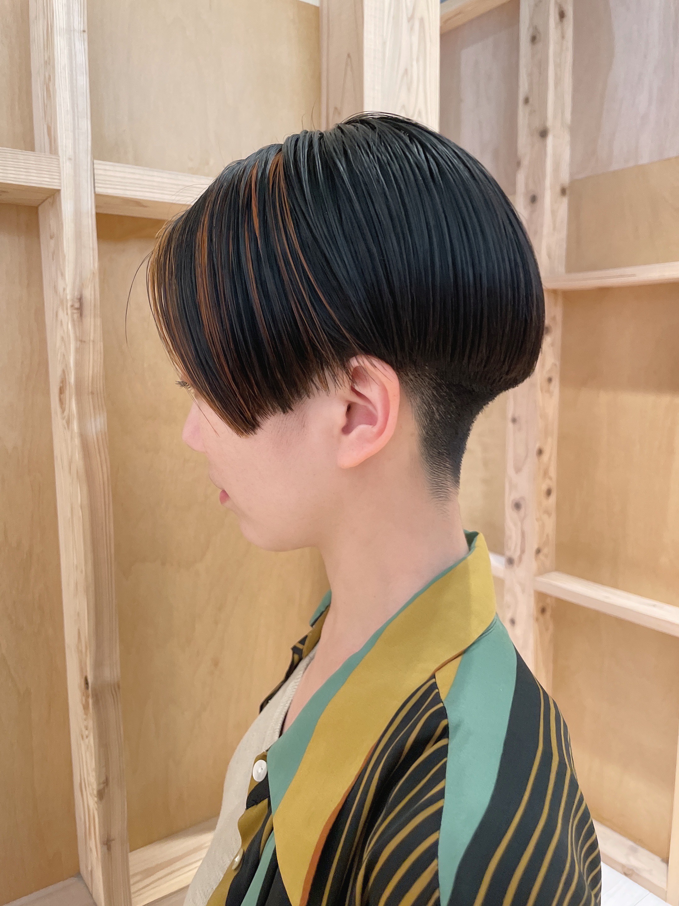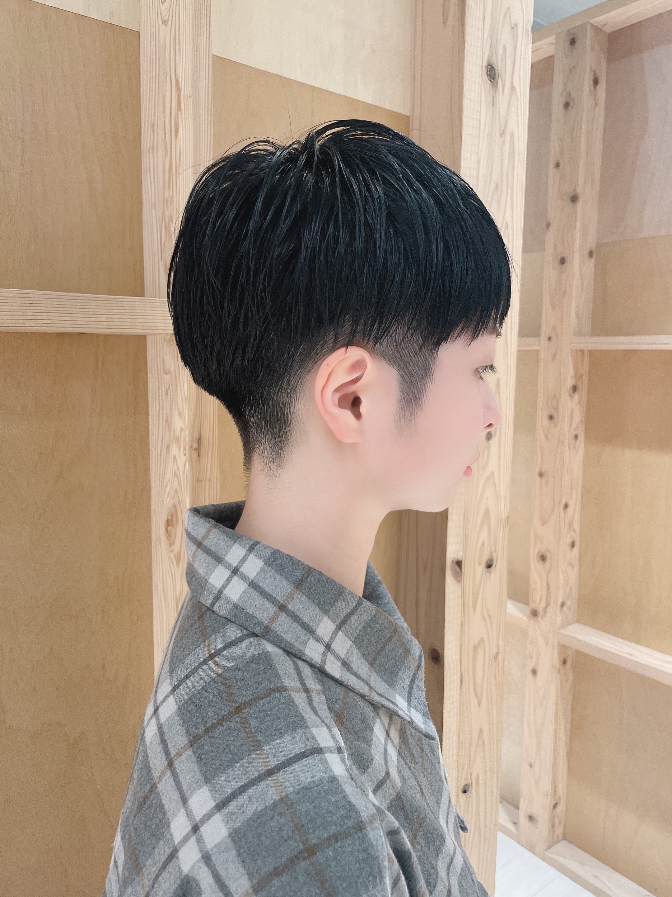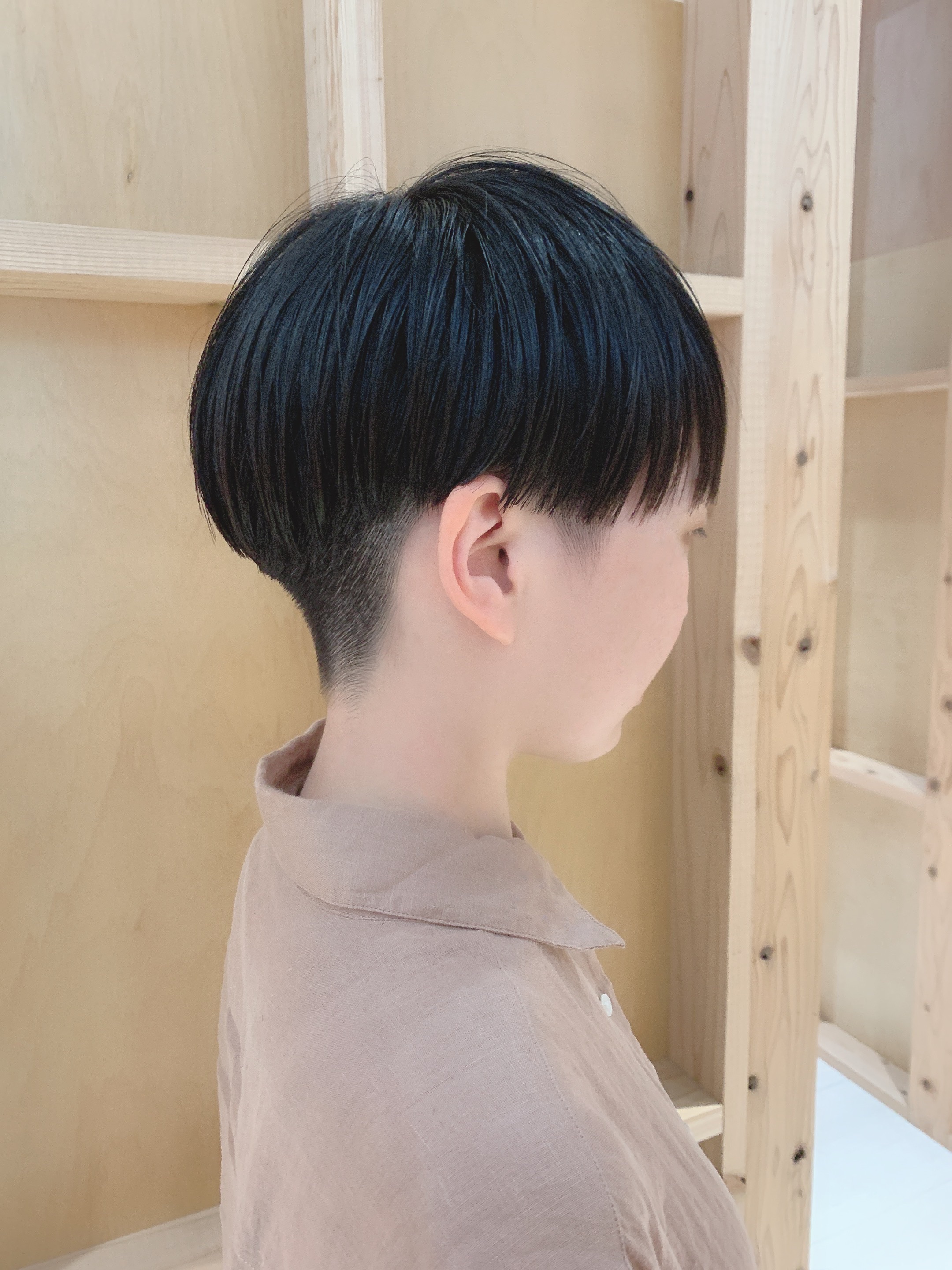 ツーブロックマッシュ。ラインを残してガチめなマッシュです。かわいい印象になりマッシュ。