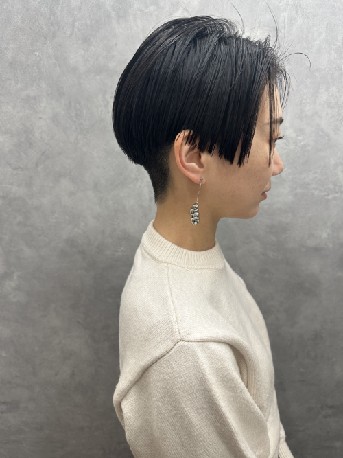 ツーブロックのハンサムショート。サイドのラインはざっくりした感じを残しています。